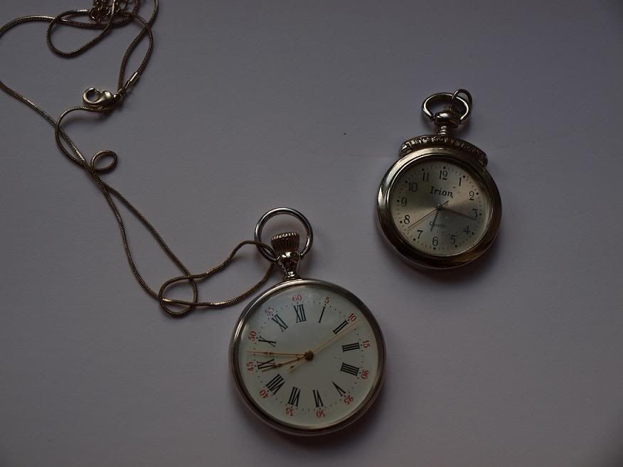 Nun gestern habe ich, nach sieben Tagen schufften, durch einen glücklichen Zufall frei bekommen und habe mich auf den Weg zum Schanzenflohmarkt gemacht. Da es nachts in strömen gegossen und wie wild gestürmt hat, war leider nicht so viel los, aber ich habe endlich zwei Taschenuhren erwerben können-zwar elektrisch aber fuktionierend. Die eine habe ich gleich an eine Kette gehängt und gestern Abend ausgeführt.